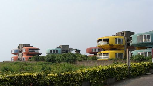 Y por último, las que quedaron en proyecto y terminaron siendo derruidas. Las famosas "Casas Ovni" de San Zhi, Taiwan: